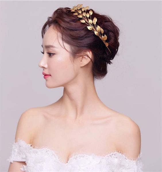 Tóc búi gọn kiêu sa sẽ làm khuôn mặt bạn trông sáng hơn và rực rỡ hơn nếu kết hợp thêm một chiếc cài kim loại đính đá lấp lánh.