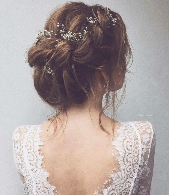 Tăng thêm độ kiêu sa cho kiểu tóc này bằng cách chọn váy áo và hoa cưới thật lộng lẫy và sang trọng.