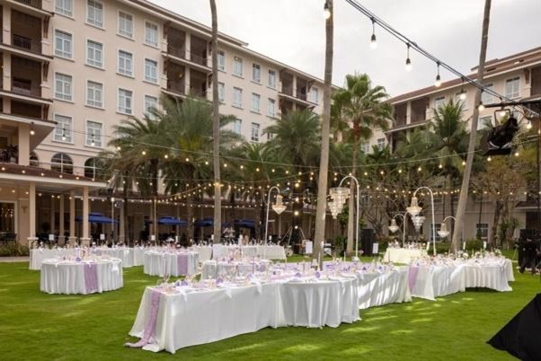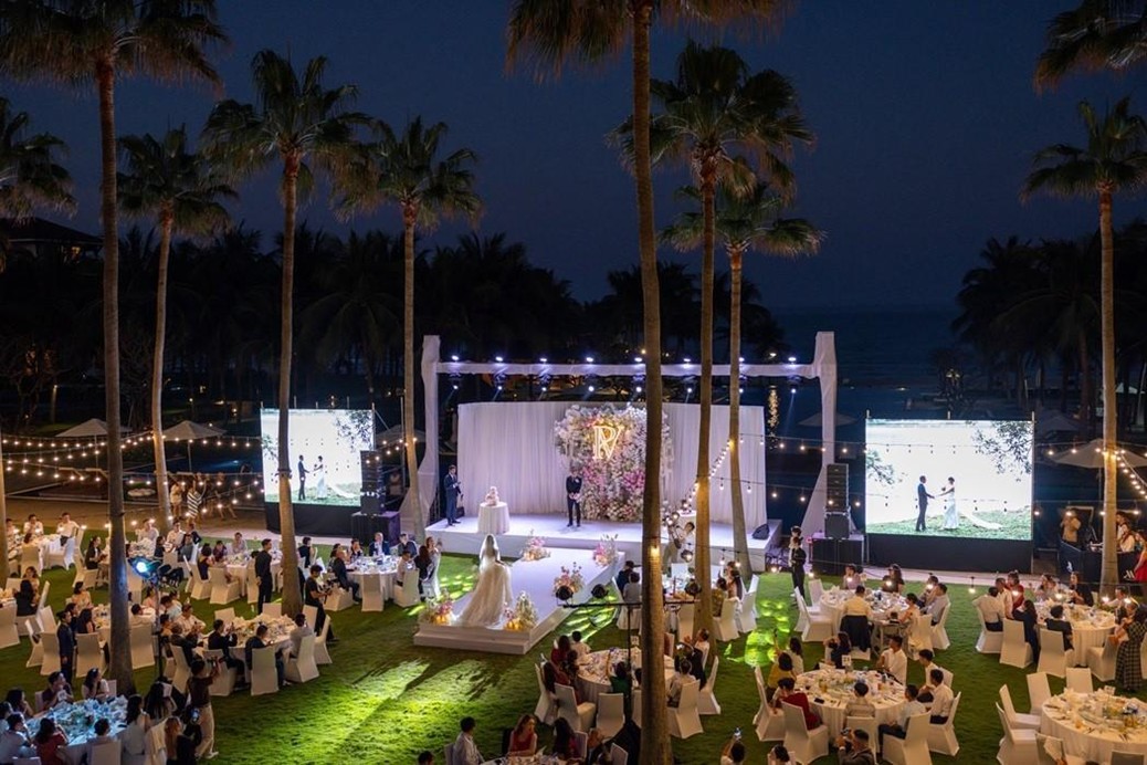 Phòng tiệc lớn có sức chứa 500 khách, bãi cỏ ngoài trời rộng rãi và bãi biển dài trắng mịn phù hợp với những buổi lễ hoặc đính hôn trang trọng, phục vụ lên đến 1000 khách. Đặc biệt, ẩm thực được coi là một trong những yếu tố quan trọng tạo điểm nhấn cho đám cưới diễn ra thành công, hứa hẹn thực đơn độc đáo và hài lòng quan khách đến dự. Ngoài ra, dịch vụ hoa tươi, âm thanh, hình ảnh, sân khấu với đội ngũ chuyên nghiệp sẽ đảm bảo cho cô dâu và chú rể có thể an tâm tận hưởng đám cưới đáng nhớ.