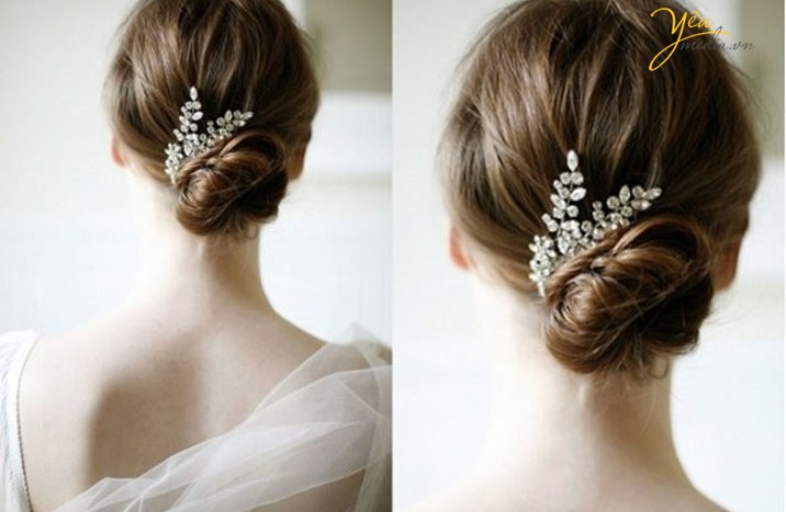 Đây là kiểu tóc đặc biệt giành riêng cho những cô dâu tóc ngắn trẻ trung, cá tính. Với kiểu tóc này sẽ làm cho khuôn mặt cô dâu sắc nét và mặn mà hơn. Rất phù hợp với cô dâu có gương mặt gầy. Khi diện kiểu tóc này cô dâu nên kết hợp với những phụ kiện như nơ cài, khăn voan, vương miệng để tăng thêm phần hấp dẫn và sang trọng.