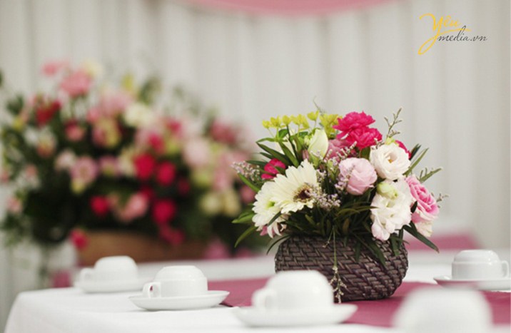 Điểm chút sắc màu hoa tươi cho gian phòng thêm sức sống và tạo sự vui vẻ, lưu ý hoa để bàn không nên cắm quá cao, quá lớn, gây cảm giác khó chịu, cản trở cho người đối diện. Hoa cũng tránh chọn loại có mùi hương quá nồng, đặc biệt là trong không gian nhà phố chật hẹp dễ khiến nhiều người đau đầu, khó chịu hoặc dị ứng.
