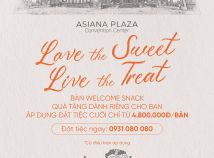 Tại đây, các dâu rể sẽ có cơ hội đánh dấu ngày tuyệt vời nhất đời mình trong một không gian sang trọng. Các sảnh tiệc của Asiana Plaza đặc biệt được thiết kế với nhiều phong cách để cho cô dâu, chú rể có thể chọn lựa phù hợp tuyệt đối với cá tính của bản thân.